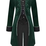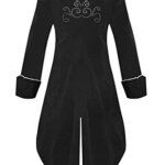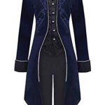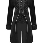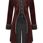★Halloween Costumes for Men: Unique renaissance vintage long tailcoat for mens/males/teens/adults, stand lapel collar, single breasted, full lining, button up, folded cuff, long sleeve, unique and exquisite embroidery on front and back, frock tail, slim fit. Dressup as beast/pirate/vampire/circus ringmaster/ringmaster/captain/king/with it.