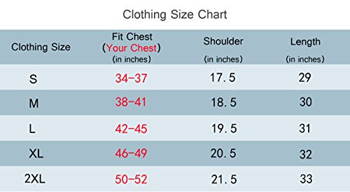 US Size:US S (Chest 34”-37”),US M(Chest 38”-41”),US L(Chest 42”-45”),US XL(Chest 46”-49”),US 2XL(Chest 50”-52”)