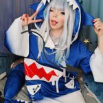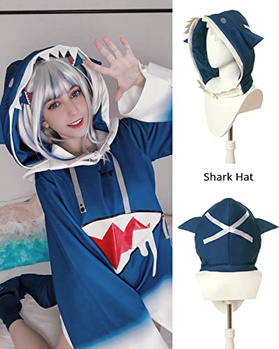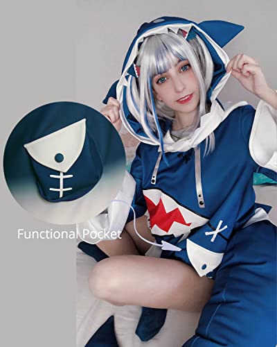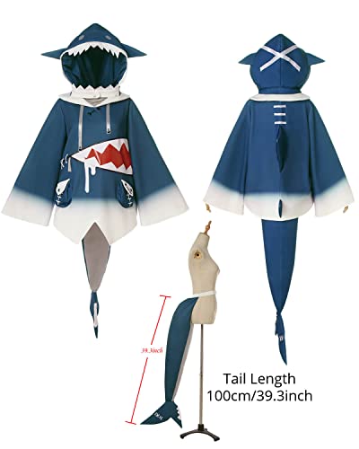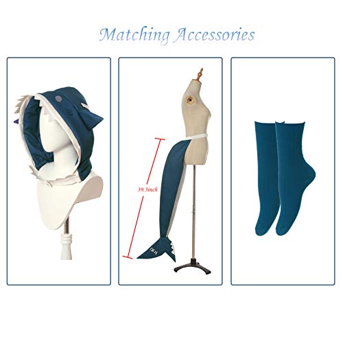 Package Included – This Gawr Gura cosplay costume includes a shark mouth hat, a shark jacket, a pair of shark mouth hairbands, a pair of socks, and a 39″ long fish tail.