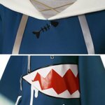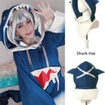 Design – The gawr gura shark hat is removable and the front button can adjustable the size. Oversized gawr gura hoodie jacket with two true pockets on the front and the shark mouth is sewed by pu leather fabric other than printed. The gawr gura shark tail is 39.3inch length and filled with cotton.