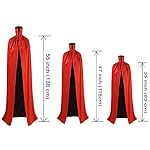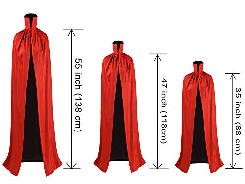 100% Polyester. Size: 55′ ,47″or 35″ . Length :(from the shoulder to the hem ), Style :Stand Collar , with hood. Color: Black and Red Reversible Cloak