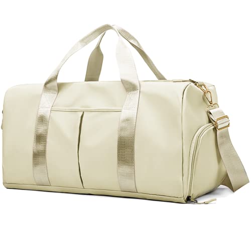 Dry Wet & Separate Design: duffle bag women has undergone strict quality inspection,The high density waterproof pocket can help you to divide wet clothes, towels, shampoo or cold drinks. Travel duffel with 1 large main zippered compartment,and 1 upgraded waterproof PVC Lined pocket,also 1 front and 1 back external small zipper pocket.
