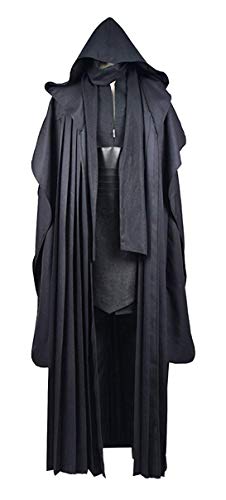 Mens Black Tunic Hooded Robe Pants with Belt Full Set Adult Tunic Costume Classic Halloween Cosplay Outfit US Size