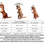 FUNFLATABLE DETAILS: Blow up costume with zip up closure. Ensure cuffs are sealed tightly for best air pressure in costume, and adjust the blower fan to point upwards towards the head for best total inflation. RUBIES ORIGINAL T-Rex Inflatable comes with a fan and battery pack that requires 4 AA batteries (not included). JURASSIC WORLD T-Rex Inflatable comes with a fan and a dual source battery pack that uses your choice of 4 AA batteries (not included) or a portable charger and USB cord.