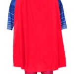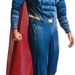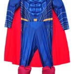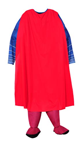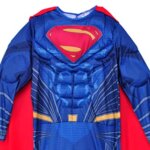 Costume consists of Superman muscle chest jumpsuit with attached boot tops and removable cape.