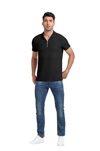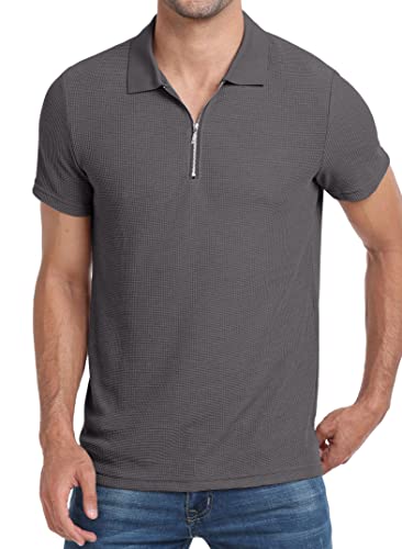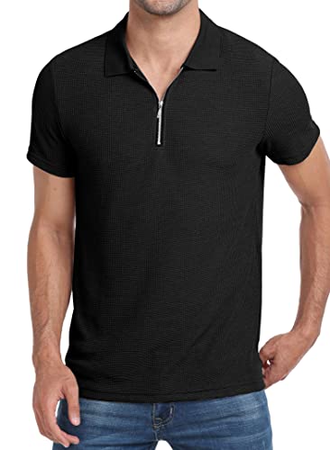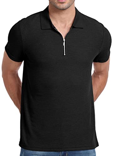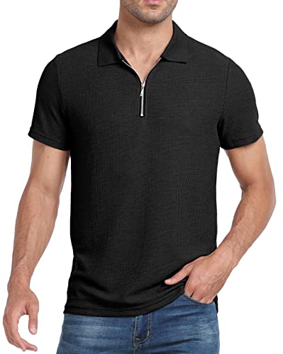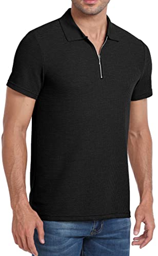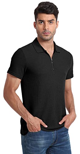 Mens casual quarter zip shirts,ribbed collar.A must-have fashion polo shirts for a men’s closet.