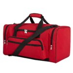 Travel duffle with comfort grip top handle, padded adjustable and removable shoulder straps.