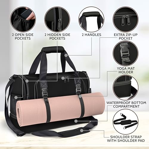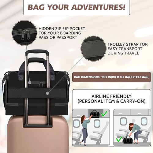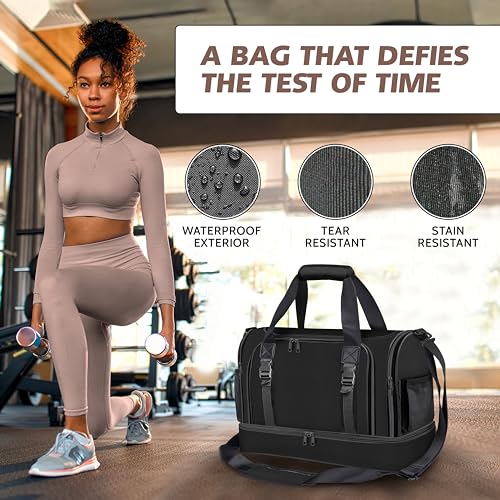 ULTIMATE ORGANIZATION: Experience unrivaled orderliness with our gym bag’s ingenious pocket layout. From two hidden compartments to a waterproof bottom section, effortlessly separate and access your essentials with this duffle bag women travel, keeping everything in its place.