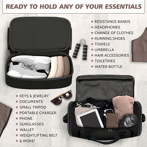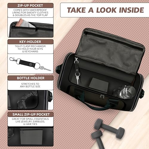 SWEAT-PROOF INTERIOR: Say goodbye to the hassle of separating sweaty gym clothes from your clean belongings. Our small duffle bag for the gym features a special waterproof-lined interior pocket, preserving freshness and cleanliness during and after intense workouts.