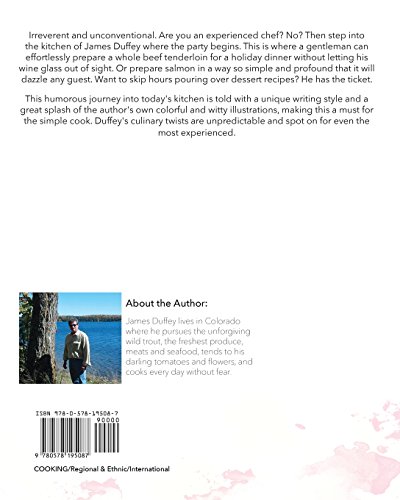 Irreverent and unconventional. Are you an experienced chef? No? Then step into the kitchen of James Duffey where the party begins. This is where a gentleman can effortlessly prepare a whole beef tenderloin for a holiday dinner without letting his wine glass out of sight. Or prepare salmon in a way so simple and profound that it will dazzle any guest. Want to skip hours pouring over dessert recipes? He has the ticket.