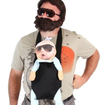Adult unisex standard fit: carlos baby, baby carrier is machine washable; beard and sunglasses hand wash only; costume accessory kit transforms anyone into alan from the hangover trilogy instantly