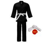 🔷【DURABILITY】: Strongly stitched at pressure points for durability. Sewn to provide extra space on shoulders for speedy unrestricted movements. Wider pants design allow ease during stretching, high kicks and lower stances.