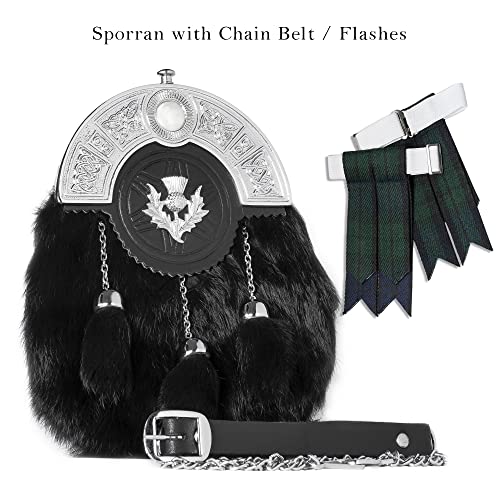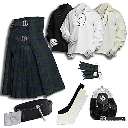 KILT PACKAGE : Kilt Set includes 1 x Kilt, 1 x Sporran, 1 x Belt, 1 x Chrome Finish Buckle, 1 x Socks, 1 x Flashes, 1 x Kilt pin.