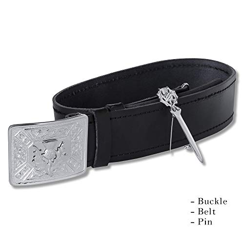 KILT PIN AND BUCKLE : Kilt Pin and Kilt Belt Buckle Chrome Finish with Thistle Badges.