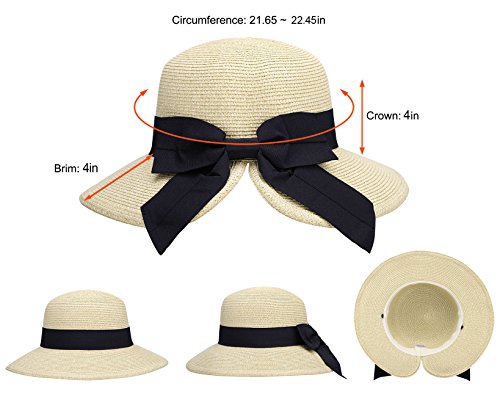 Great Fit Summer Hats – One Size fit most lady women, hat circumference 21.65-22.45″ , Large Brim 3.7 inch . You can adjust the size of the hat through the rope inside in the hat. It is also suitable to wear even with various hair styles such as a ponytail