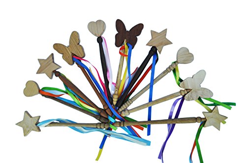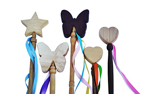 These wands are made from a variety of hardwood cutoffs leftover from our other projects. It’s perfect for complimenting your child’s imagination whether the wand is used for magic, dancing, or a cat toy. Each of these wands has a handle that has been hand turned on the lathe and is completely unique no two are ever the same. These are made from reclaimed wood. Colors of ribbon will be random unless specific colors are requested.