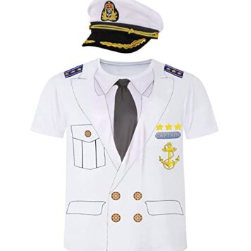 Ibeauti Captain Shirt Funny Boat Yacht Costume Tee Hat Set for Men Party Boating