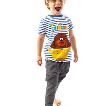 Hey Duggee Character Floppy Ears Boys Blue & White Striped T-Shirt Kids Tee